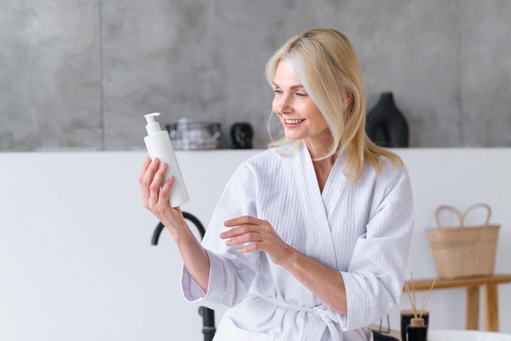 Existen varios tipos de champús diseñados específicamente para cabello blanco o rubio. Un buen ejemplo son aquellos con pigmentos morados o azules, que actúan como un «neutralizador» de los tonos amarillentos, contribuyendo con una apariencia más natural.